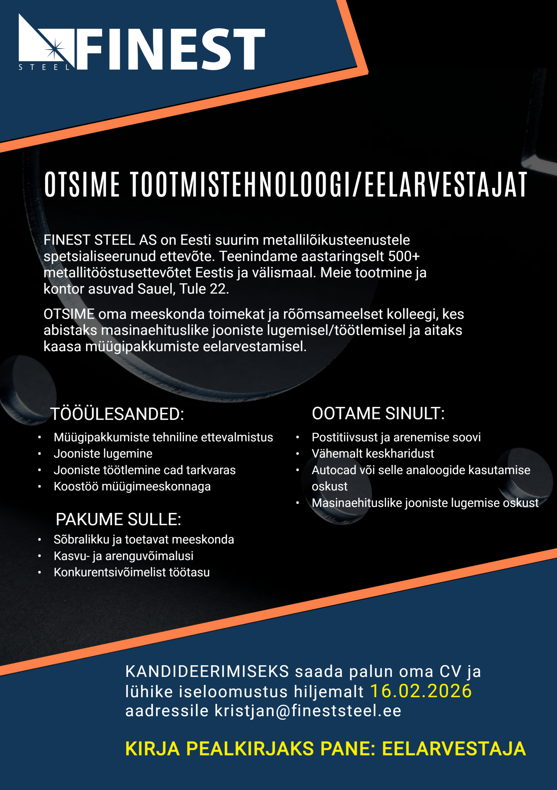 Otsime Tootmistehnoloog / Eelarvestaja